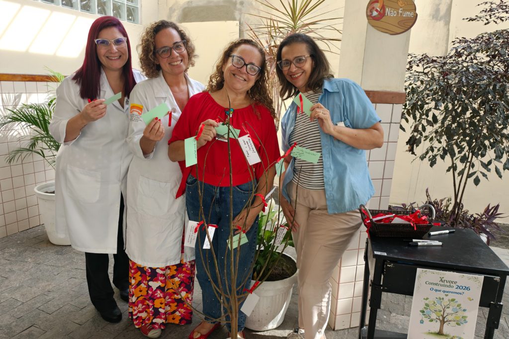 A aderência foi imediata e, de primeira, muitos profissionais do hospital penduraram seus papeizinhos na árvore dos desejos para 2026, perto do ambulatório da unidade de saúde que é referência em pediatria no estado do Rio de Janeiro.