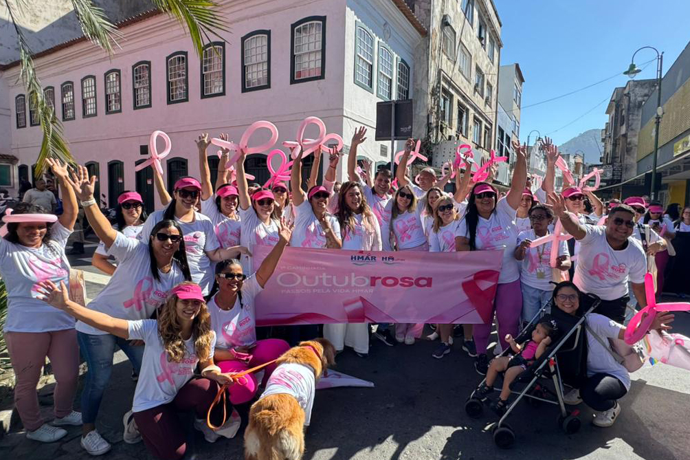 Hoje, sábado (25), o Hospital Maternidade Angra dos Reis – Dr. Érico da Fonseca fez uma grande caminhada pelas ruas do Centro de Angra dos Reis celebrando o Outubro Rosa.