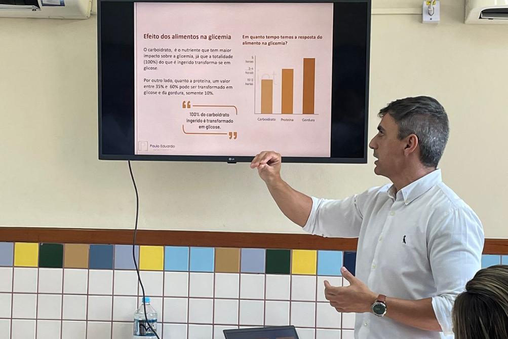 Desmistificando tabus e informando profissionais de saúde, uma palestra sobre o manejo do diabetes tipo 1 foi realizada no Hospital Getúlio Vargas Filho, o Getulinho, referência em pediatria no Rio de Janeiro. Paulo Eduardo Batista, nutricionista e educador físico, falou sobre a estratégia de ouro para o controle glicêmico, baseada na contagem de carboidratos e na aplicação de insulina.