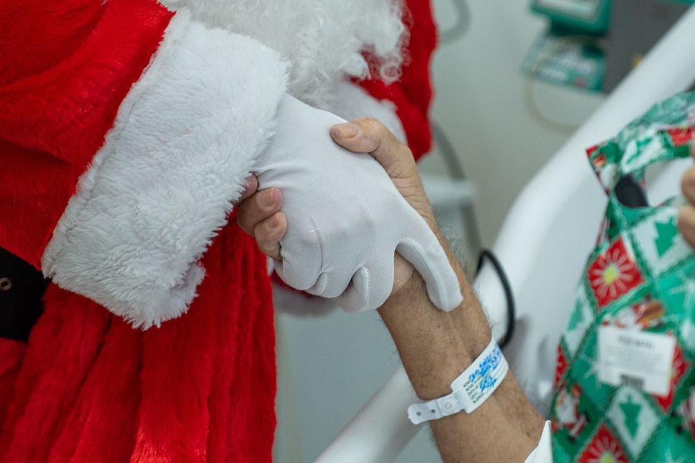 Um momento de grande emoção, durante a visita do Papai Noel, foi na ala de Saúde Mental do hospital, onde os pacientes demonstraram muita alegria em encontrar o “Bom Velhinho”.